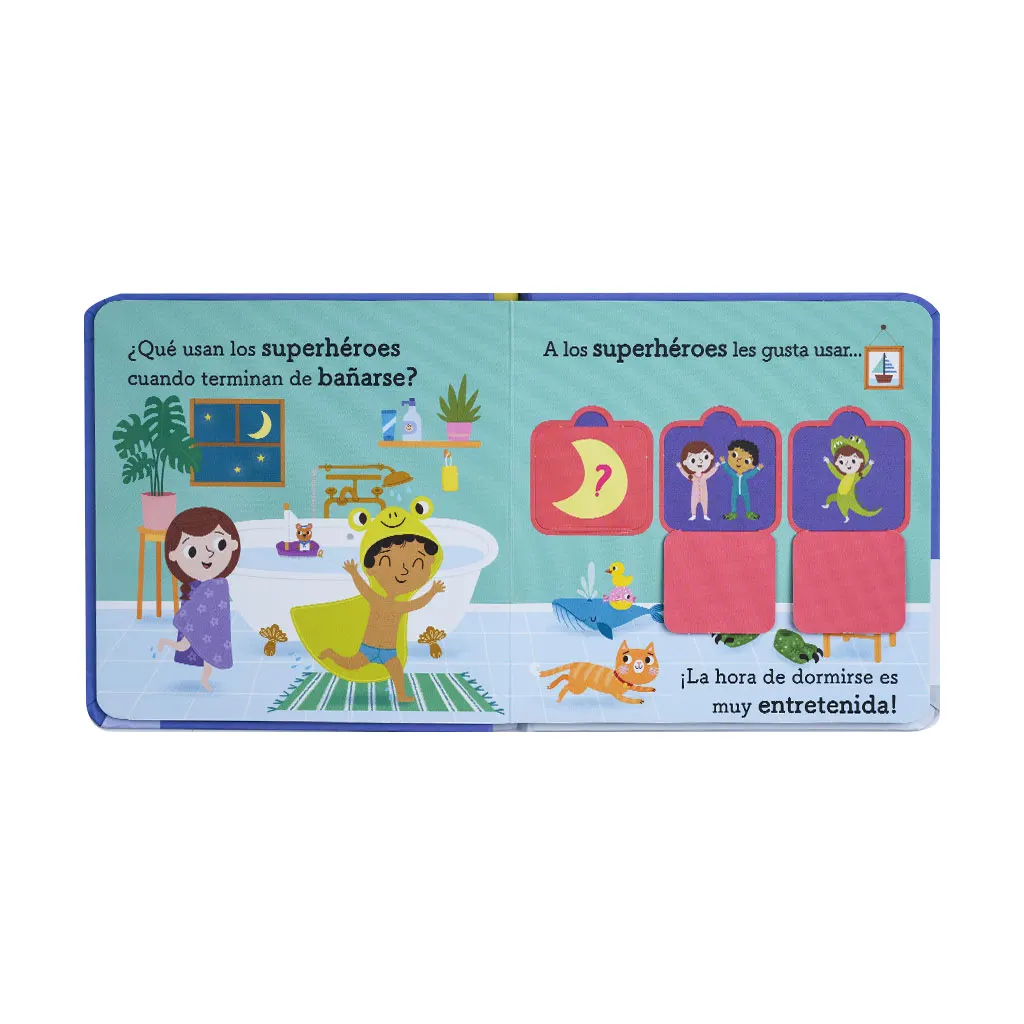 Libro con solapas para aprender sobre la rutina para ir a dormir